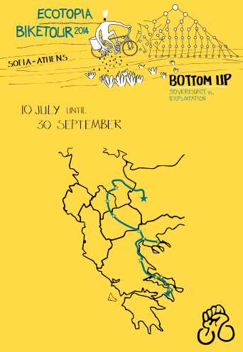 Each year, we collectively organise a new route and highlight a different theme such as; food sovereignty; sustainable economics or global justice. This year we will look at the increasing exploitation of land, people and of the political situation caused by the economic crisis in Europe. We are interested in learning about how people are finding different ways of making a living and the social movements and mobilisations that have arisen as a result of this exploitation.